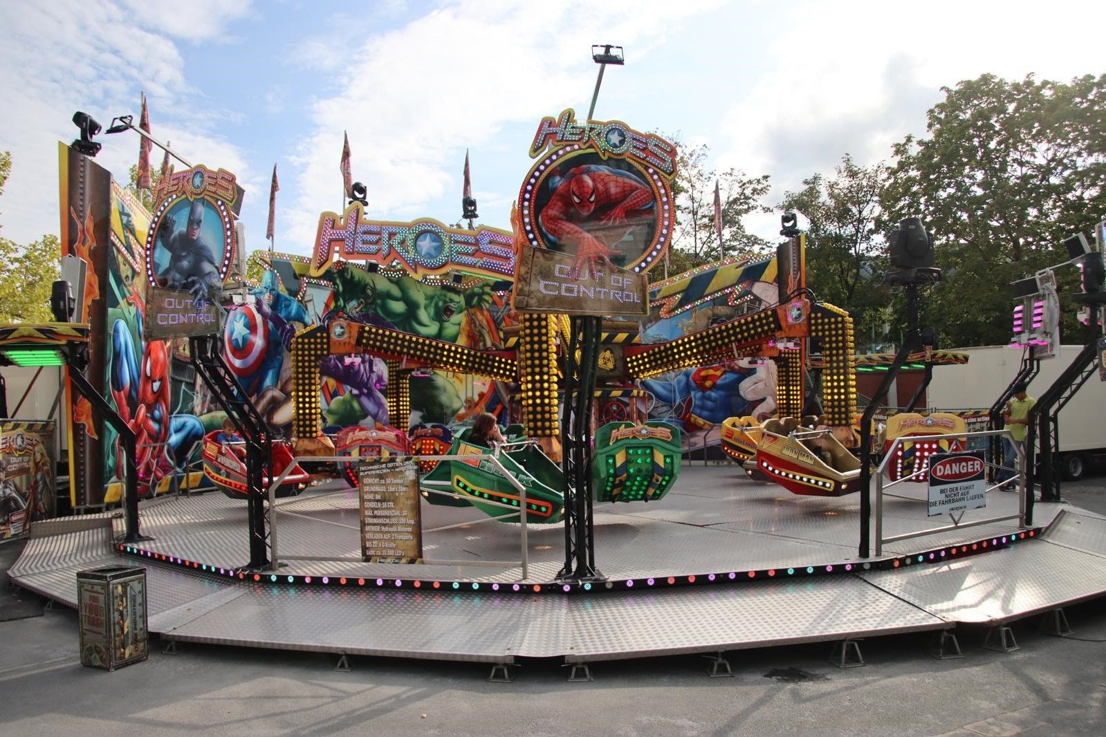 Im rasanten Wirbel aus Licht, Musik und Geschwindigkeit hebt Heroes dich in die Lüfte. Drehende Gondeln, pfeifender Wind und pulsierende Beats lassen dich das Gefühl echter Heldenpower spüren. Wer hier einsteigt, erlebt Adrenalin pur – ein Flugabenteuer, das Gänsehaut verspricht!