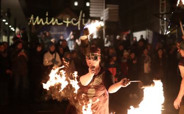 Erleben Sie eine spektakuläre Feuershow inmitten des Mindener Weihnachtsmarktes. Die Künstler*innen erzählen eine flammende Geschichte unter freiem Himmel.